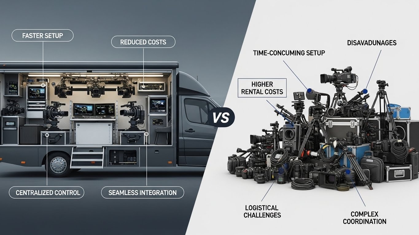 مما يجعل تأجير معدات تصوير عبر الوحدة المتنقلة أكثر اقتصادية وكفاءة من التأجير المنفصل.